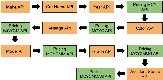 - PricingMCYCMMGA API - Pricing By Make, Car Name, Year, Color, Mileage, Model, Grade and Accident Status (Minimum - Maximum and Average Prices to be displayed on the basis of selected API’s)